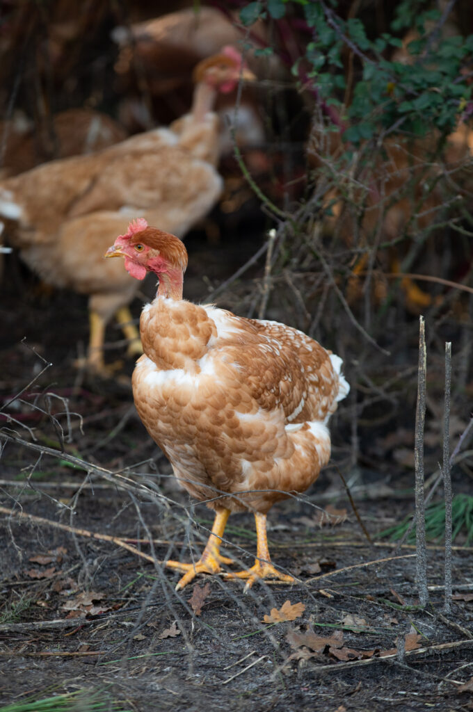 Les poulardes sont élevées en plein air pendant 120 jours. Elles évoluent sur une litière végétale lorsqu’elles sont en bâtiment.