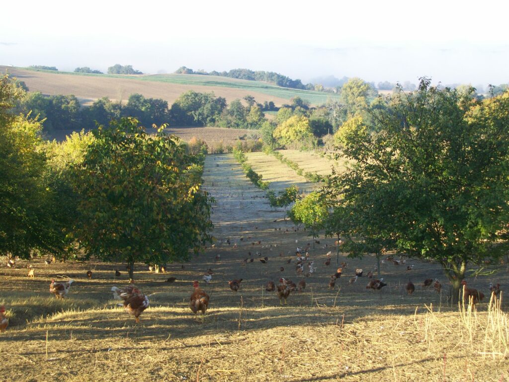 Pour apporter ombre et protection contre les prédateurs, un arbre ou arbuste pour 150 volailles est exigé, en respectant le principe de l’agroforesterie et en permettant le stockage de carbone. La distance entre les élevages et l’abattoir est limité à 100 km afin de limiter l’empreinte carbone.