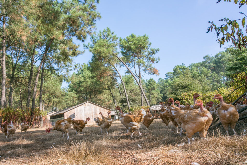 L’élevage landais en matière de volaille est unique. La forêt des Landes est un terrain de jeu immense pour les volailles.